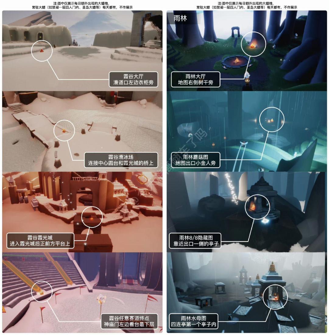 《光遇》游戏中每天的每日任务及大蜡烛的位置都不相同,玩家完成每日任务及收集大蜡烛都可以得到丰厚的兑换奖励,奖励可以用于兑换各种动作及道具,不过很多小伙伴不知道每日任务怎么做,又懒得自己去找大蜡烛的位置,我们汇总了每日任务的完成攻略以及蜡烛位置,一起来看看吧!