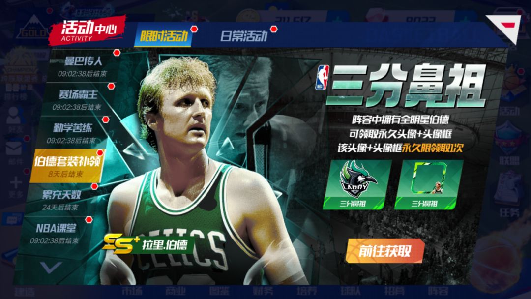 活动期间,当经理人阵容中拥有全明星伯德(无论是之前精准招募卡池获得或是本次自选招募卡池获得),可以领取永久头像和头像框,该头像和头像框永久限领1次。