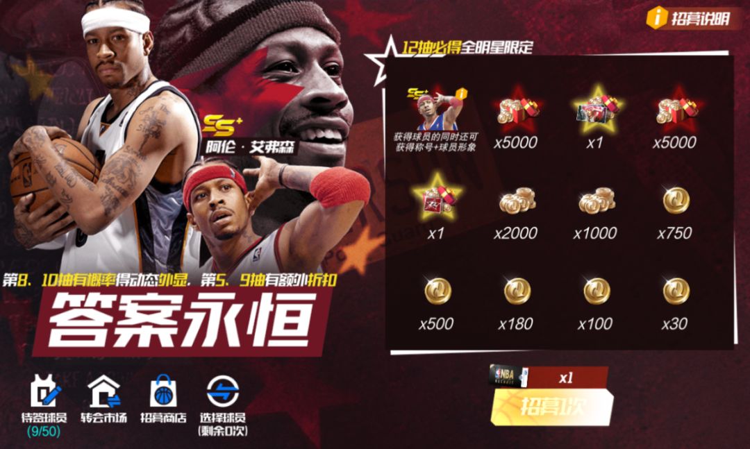 活动期间,可使用【精准招募函】在【精准招募-答案永恒】池中,招募全明星队阿伦·艾弗森。