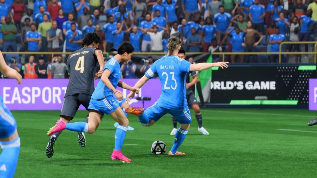 前一代产品fifa23我觉得在手感上是一个侧重游戏性和娱乐性的游戏,这虽然也很好,但是却丢失了踢足球的真实感。fifa系列一直被实况玩家吐槽的也正是这一点,手感上不够真实,但是也正是因为fifa的娱乐性更强,所以他的用户基础比实况多很多,因为大部分玩家并没有这么硬核。