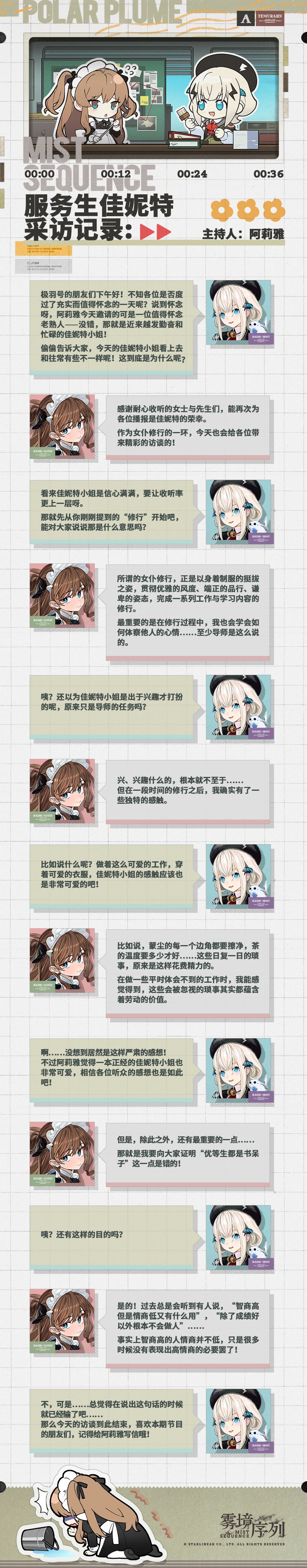 最近频频传出让人不安的消息,我委托了佳妮特,希望佳妮特这样充满活力和进取心的成员能化身女仆稍稍鼓励一下大家。