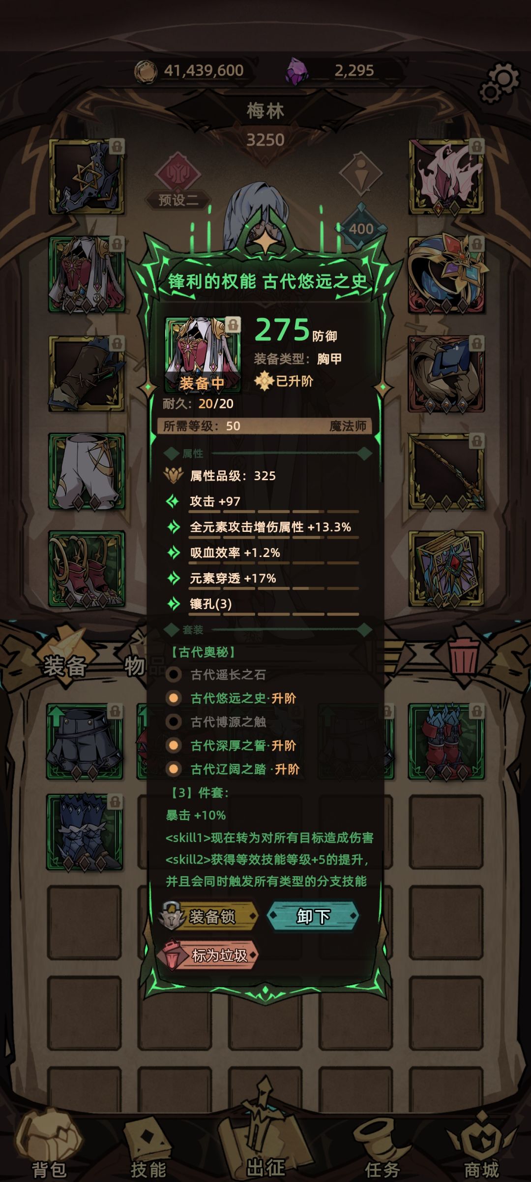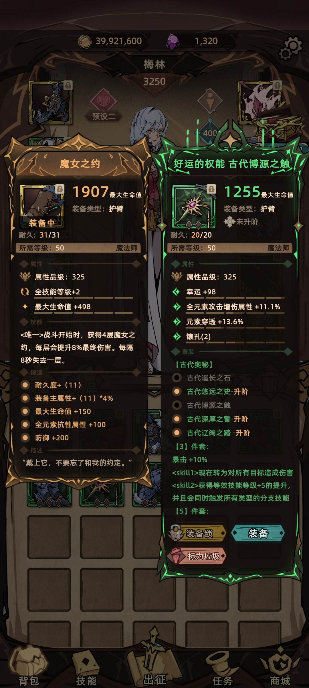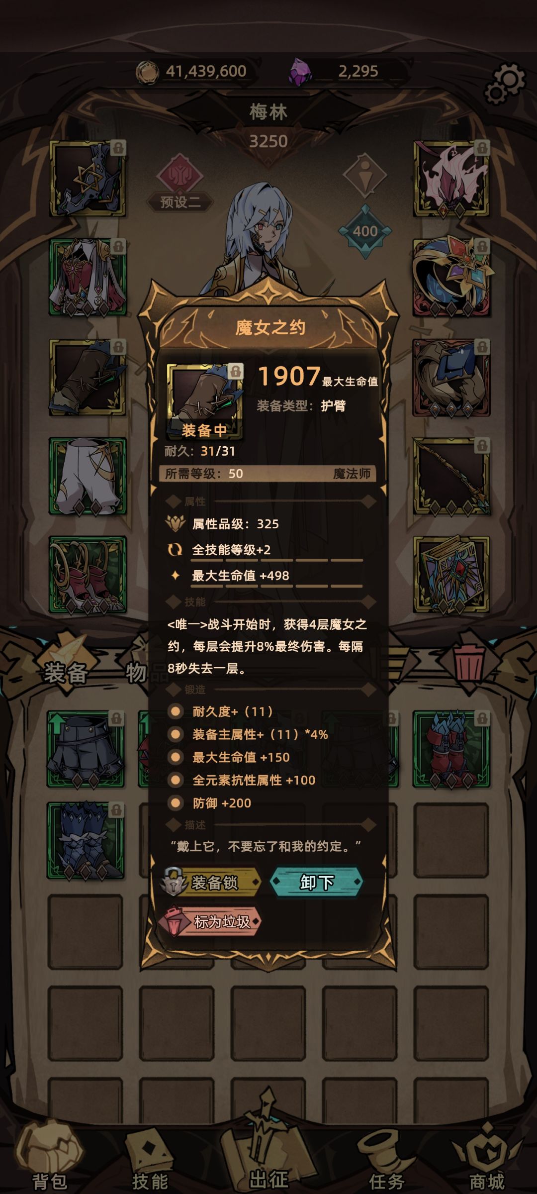 装备点评:法师的暗金选择不多 最后选择了魔女 32%的终伤加成与全技能2