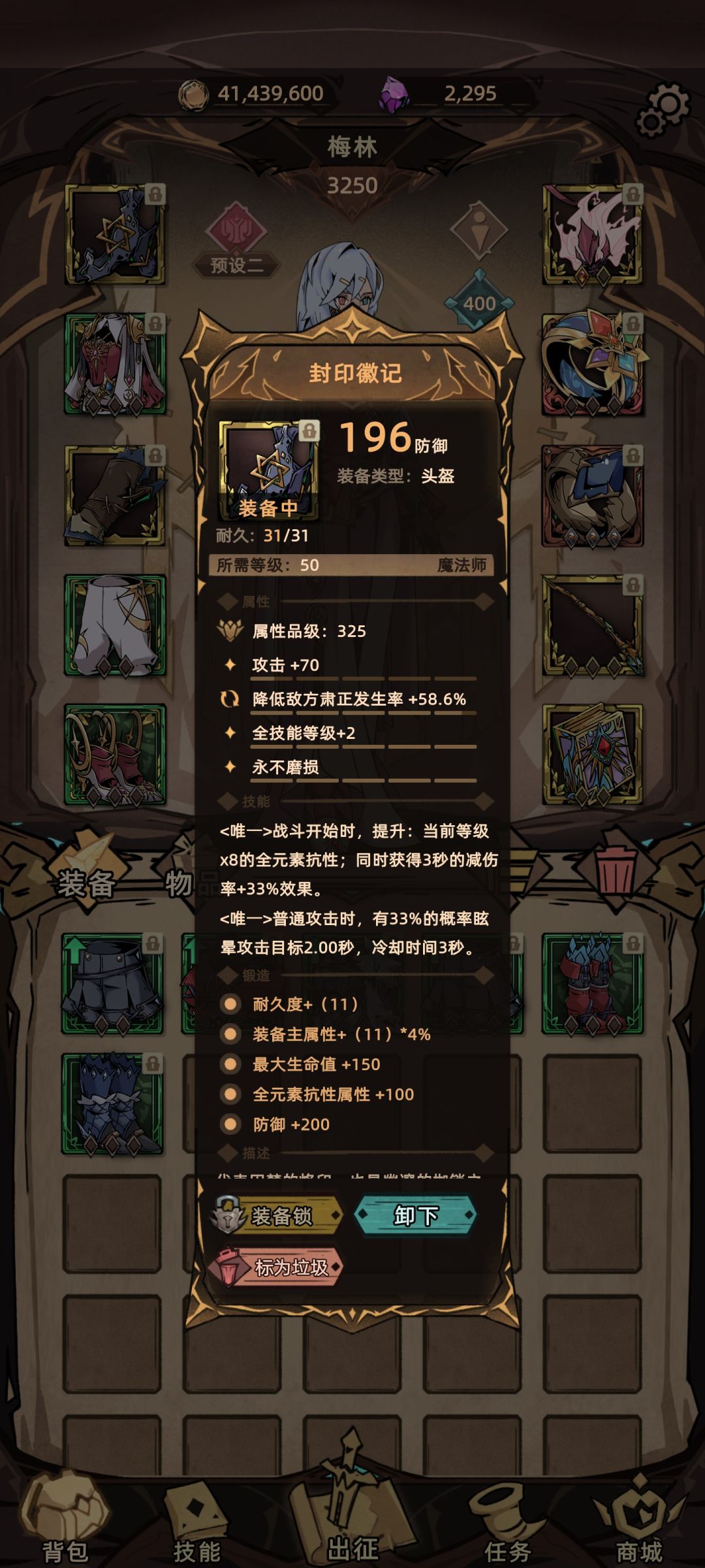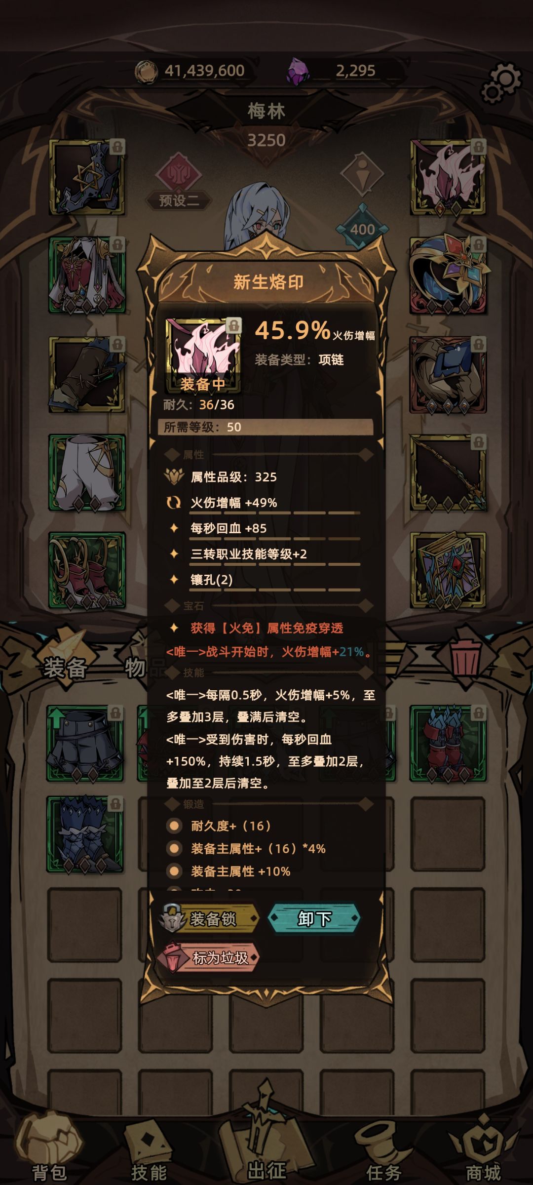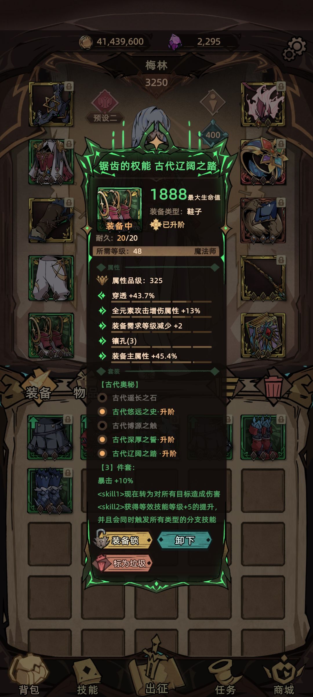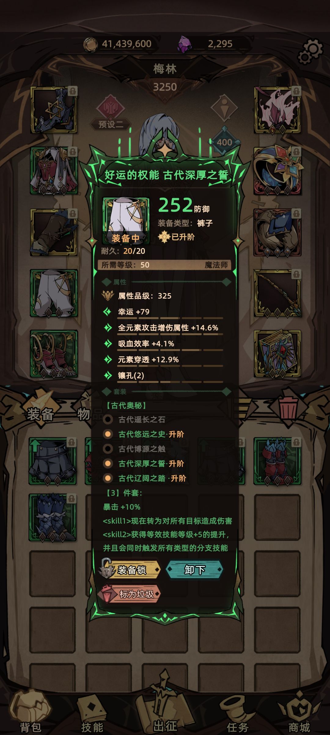 装备点评:法师的暗金选择不多 最后选择了魔女 32%的终伤加成与全技能2