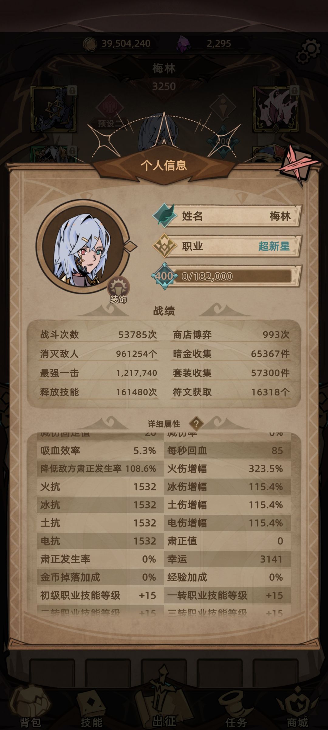 核心技能为【终末星陨】【短杖精通】【新兴学派】【爆裂火球】