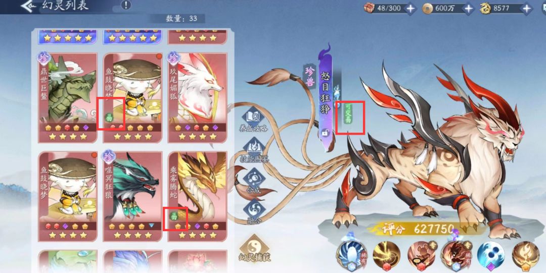 可交易的幻灵,在名字边上会有特别标识。如下图所示。