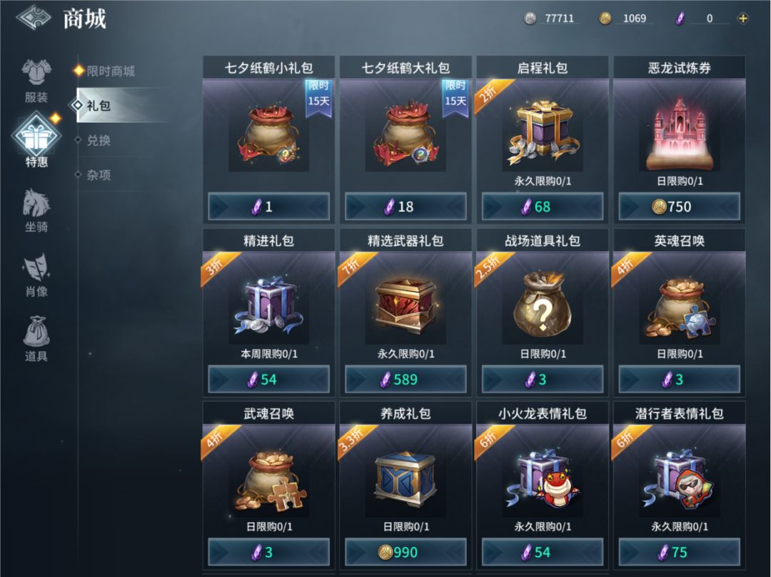 要想在“祈福小苑”中解锁更多的道具,猎手可以在游戏商城的礼包界面消耗紫晶兑换纸鹤小礼包(纸鹤*1,随机经验药水(中)*2)或者纸鹤大礼包(纸鹤*12,随机技能石*1)来换取更多七夕物品~