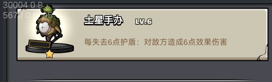 护盾和毒都有了,就需要有东西来输出了,啤酒肚天赋和土星手办,行成了一个绝佳的配合,失去多少护盾就造成多少伤害