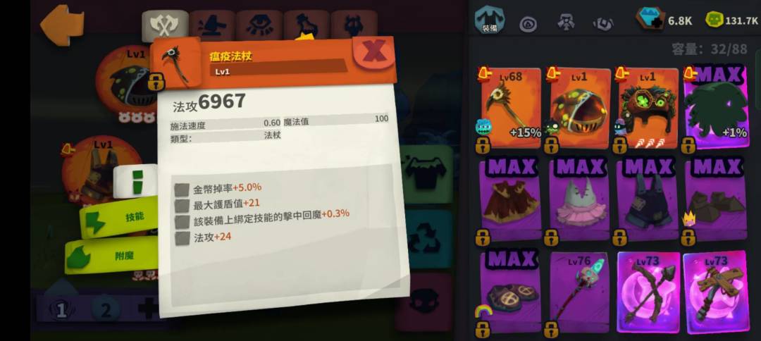 基本上因為季賽,還是放在500農夫裝,而且基本上只要上橘不用洗詞就能用傷害夠只要注意好防禦,491都夠用,天賦主要注意要點召喚+1,這樣疊法杖才夠,先疊滿,再進場
