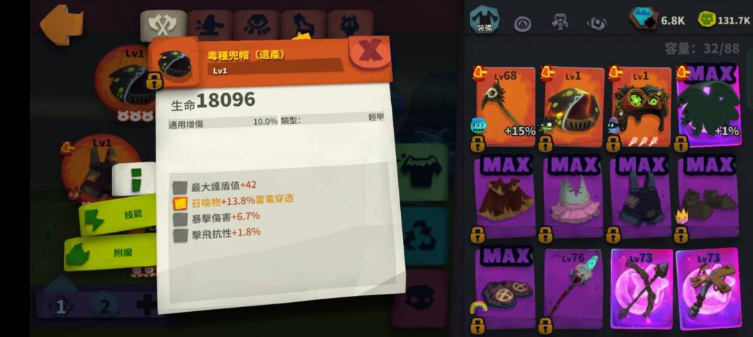 武器等級 橘50+、毒球詞綴洗出來後,就差不多成形了!