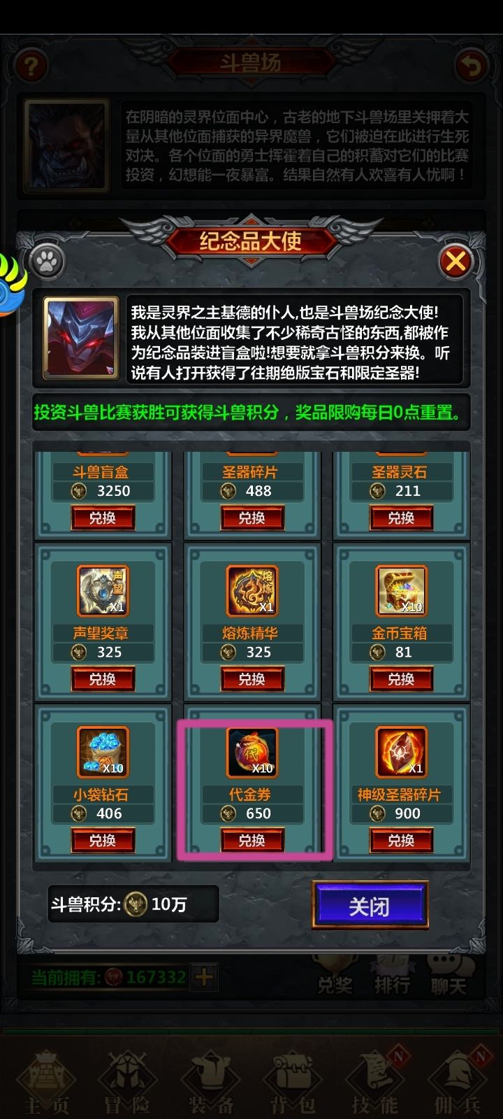 建议给斗兽也来一个代金券开通会员,然后可以人民币升级一次。每天领500积分保底,然后随机获得10个兑换物品(种类可重复),会占用兑换次数。这样斗兽骨灰玩家吃肉,普通玩家喝汤,不至于差距太大。