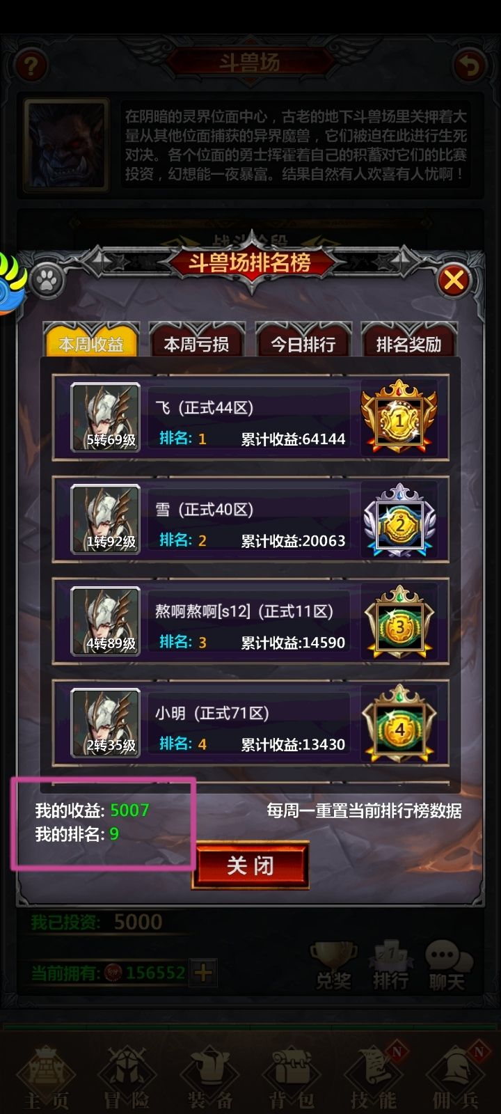 斗兽是一个口碑两极分化很严重的玩法,喜欢的人觉得可以无限投入时间,不至于无事可干,压中偏门那种刺激、快乐和兴奋难以用言语描述,在群里吐槽斗兽结果也能认识很多朋友。相当于每天都有数次传统网游最快乐的“收菜”时间。同时斗兽场也是肝帝玩家逆袭的最好途径,每天花七个小时一直守着,300~500券,玩过这么多年游戏,这种设定没有之一,所以还是挺良心的。