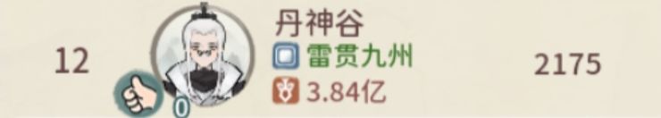 跨服第十二:2区丹神谷,全服顶尖强者之一,本届论剑中未飞升强者中的佼佼者,以凡人之躯硬撼仙人,实力深不可测。仙人之下我无敌,仙人之上一换一!
