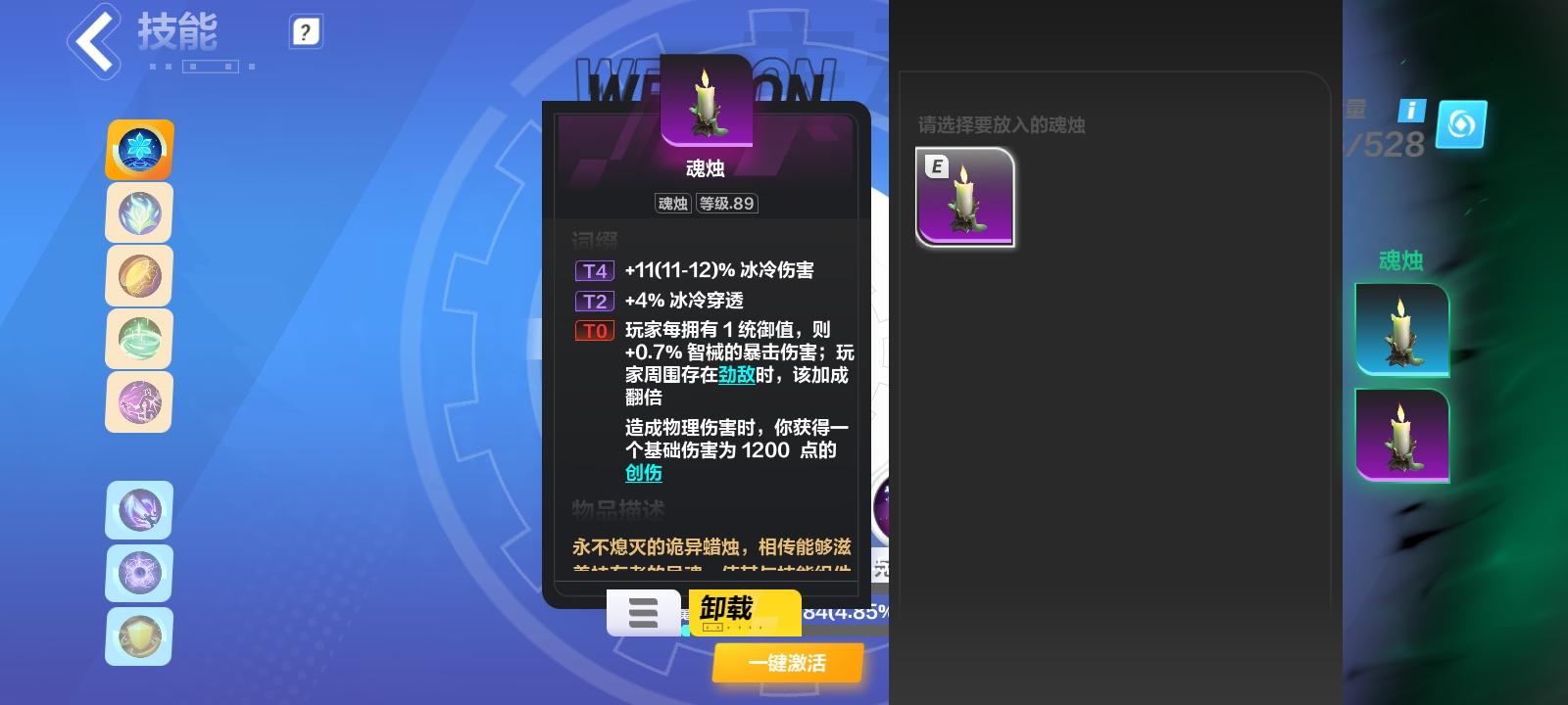 也可以保证魔灵在核心位,可以上各种变异蜡烛了。是不是很棒?就是掉血有点高,技能搭配要注意。