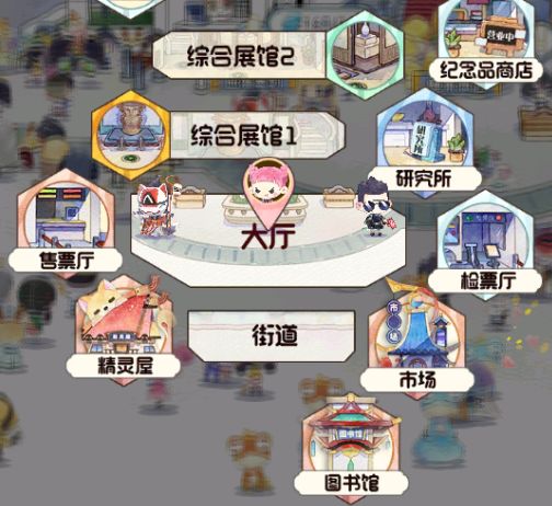 猫爪上方的小地图,可以选择想去的位置直接移动,用来从展厅移动到精灵屋、从市场移动到研究所都非常方便~