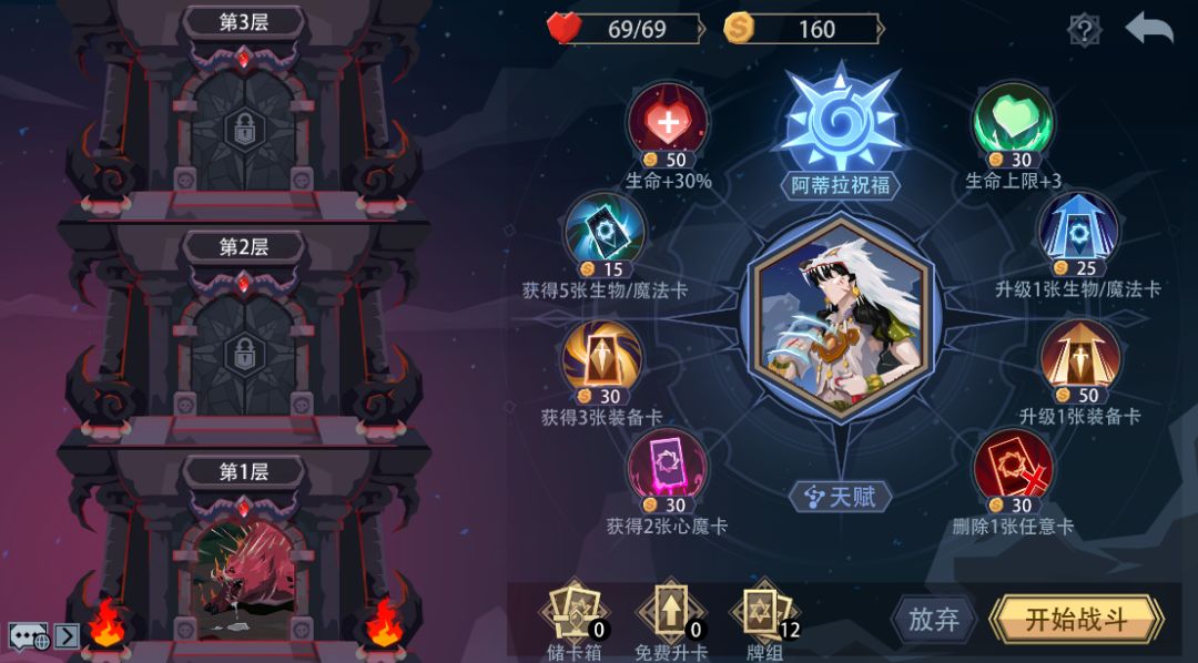 (2)新增“祝福系统”,玩家通过1/4/7/10层后可以获得1个强力祝福(3选1);