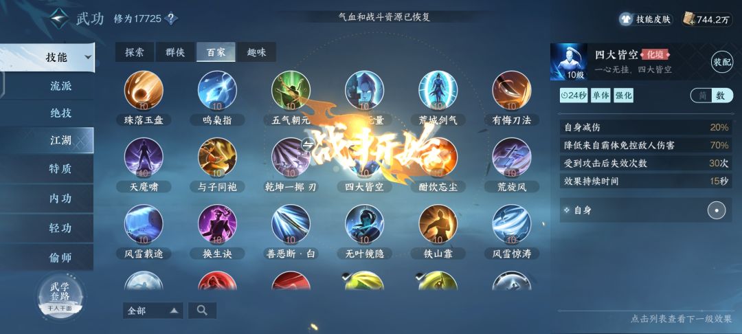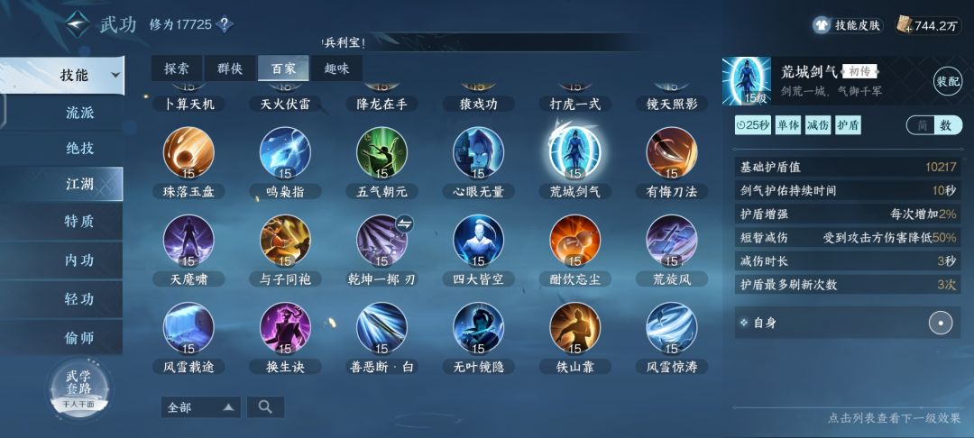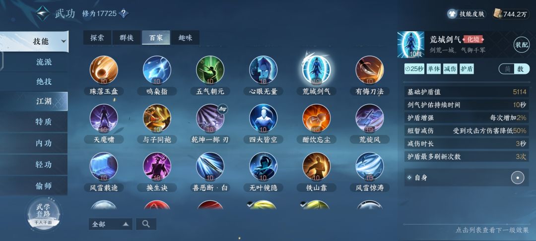 之前说在公平论武里面职业流派技能倍率和伤害的不平衡,而且因为铁衣技能的各种bug和技能前摇打不出来伤害,从而使铁衣不得不带丐帮打狗来弥补自己的免控和伤害,那么在带打狗的同时也失去了携带保命技能的位置,而我突然想到在公平论武里面伤害类技能会被平衡伤害,那我就去看了下防御类技能是否也会被平衡,一看原来如此,防御类在公平竞技并没有任何削弱效果,图放上了,大家可以自己看,15级是公平论武外面截图,10级是竞技里面截图,那么也就是说在33里面带防御类百家要比带输出类收益大,可能有人说减伤都是百分比,竞技场减少了玩家面板攻击属性那么百分比效果是公平的,但是次数呢?持续时间呢?所以在流派技能强势的职业里带防御类百家会得到更好效果。
