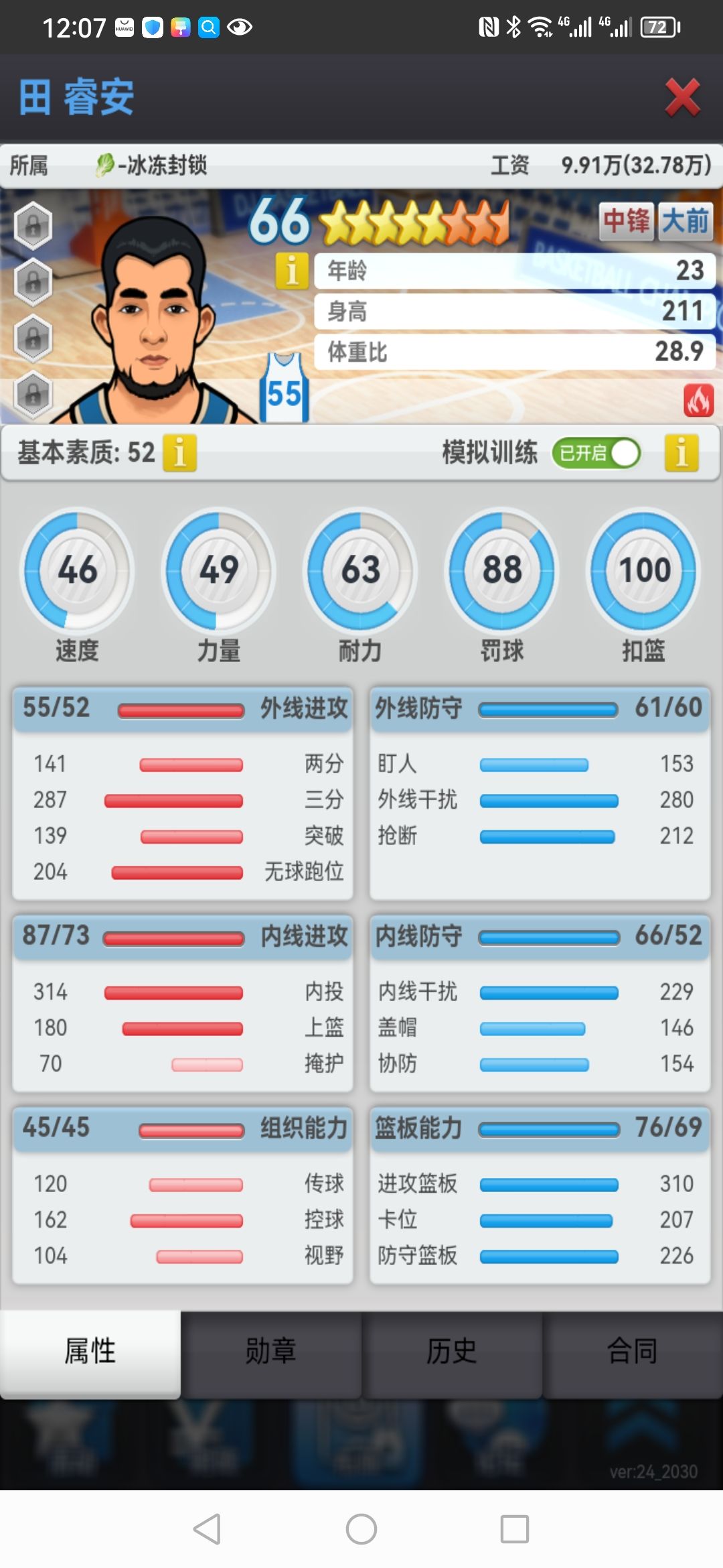 2,7万拿下的高速pf,就差外防没练和外攻板子练一大半了,1个赛季左右练完功防一体。