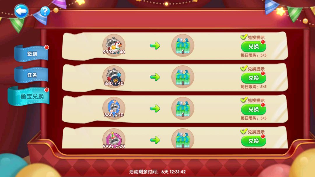 拥有活动鱼宝,马戏豪华助力宝箱就可以参与兑换啦!