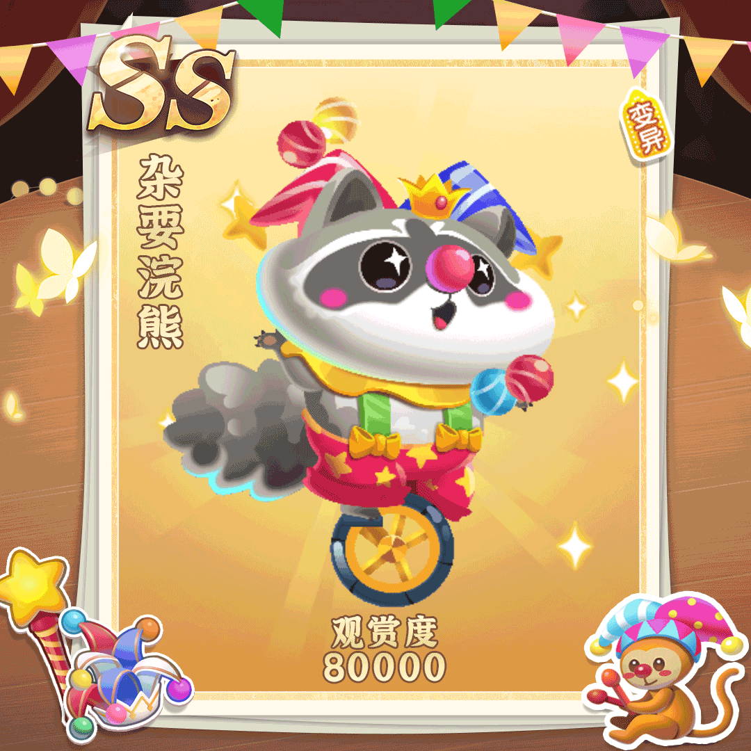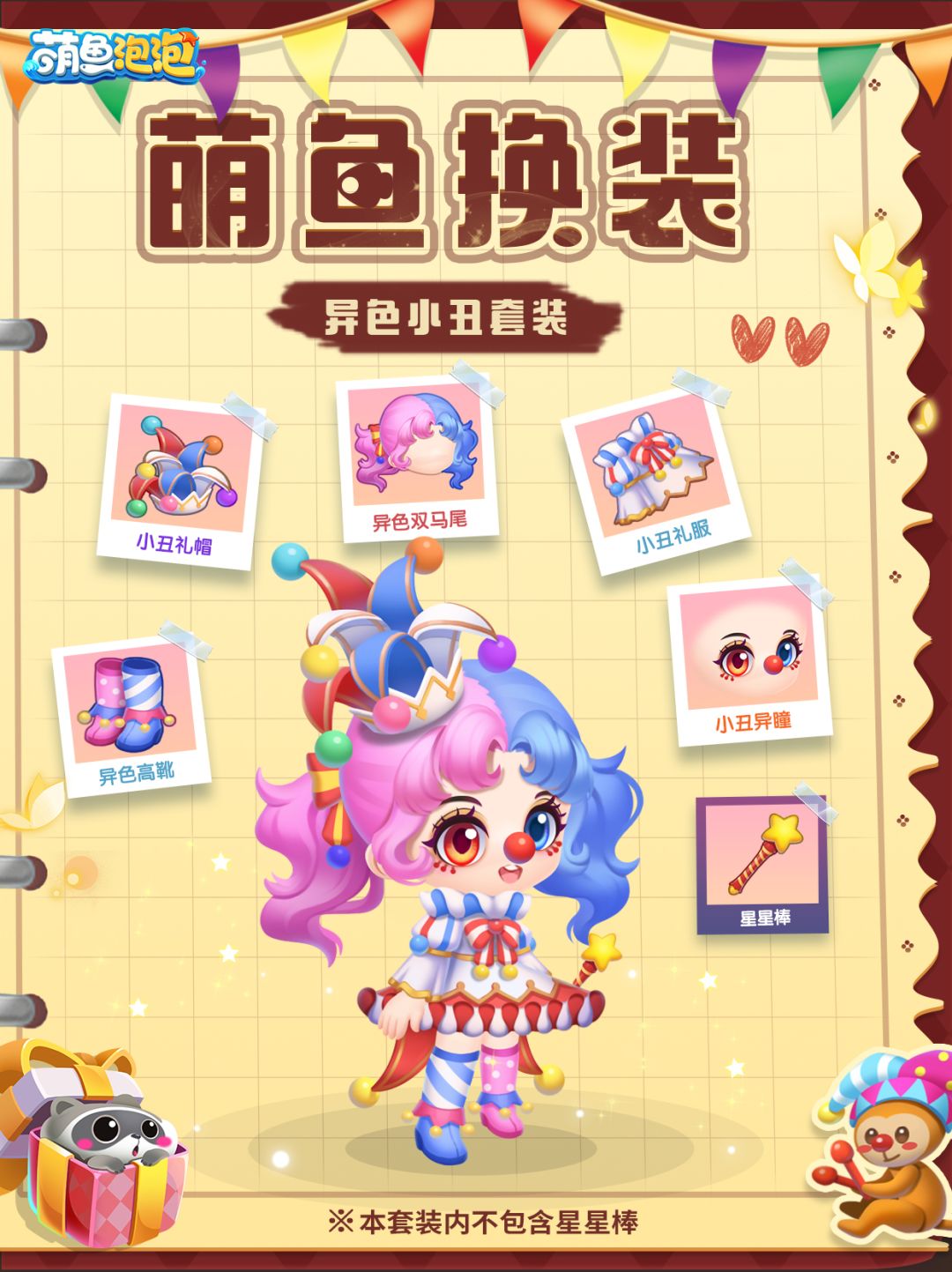②升级高级手册300钻石立即获得,国庆萌鱼小浣熊也藏在手册里,还可额外解锁小丑礼帽、星星棒限定装扮单品,最高88倍奖励等候馆长收入囊中~
