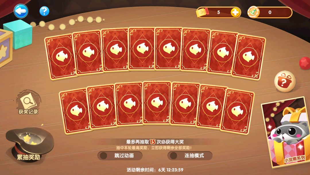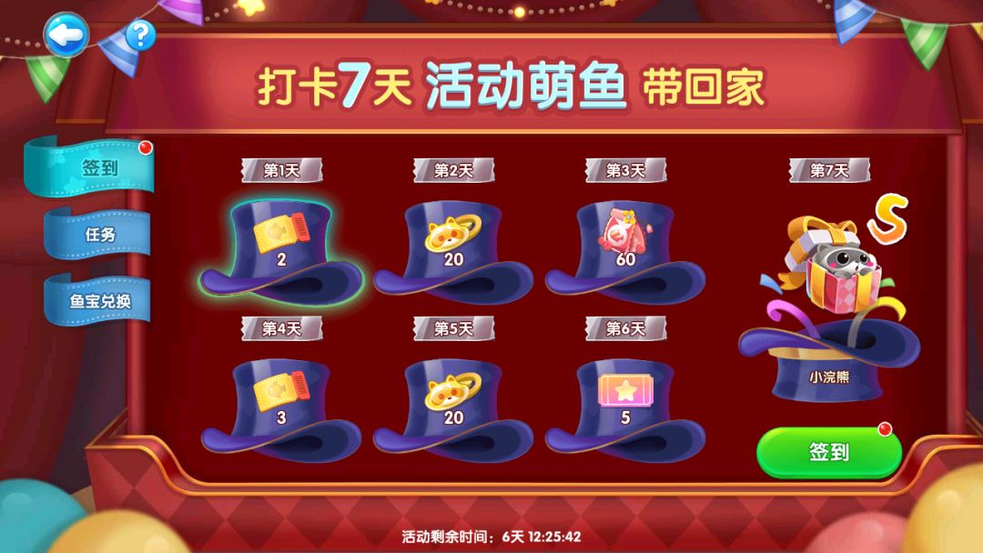 奖励有萌鱼票、浣熊发夹(用于兑换商店兑换奖励)、扭蛋券哦,最后一天当然是马戏团团宠“小浣熊”萌鱼啦,泡泡定好闹钟了生怕错过这波福利~