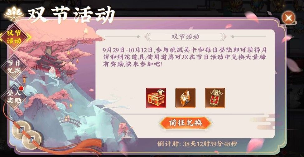 活动内容:在活动期间,参与挑战关卡和每日登陆即可获得月饼和烟花,可兑换大量稀有奖励(武将装备、培养材料、招募令等。本次节日更新将增加全新节日头像框、聊天框、双节称号。