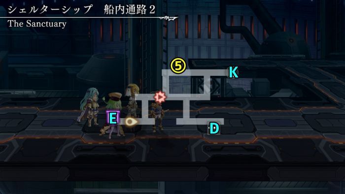 4、进C门回到地图“CDE房间”,使用丝线进E门,从地图正上方D口进入“船内通路2”。