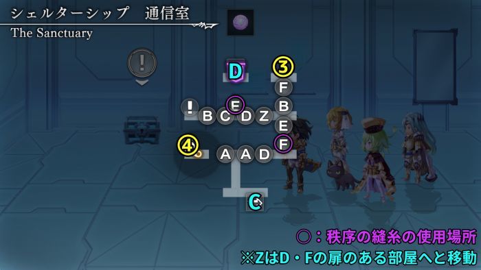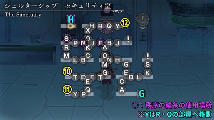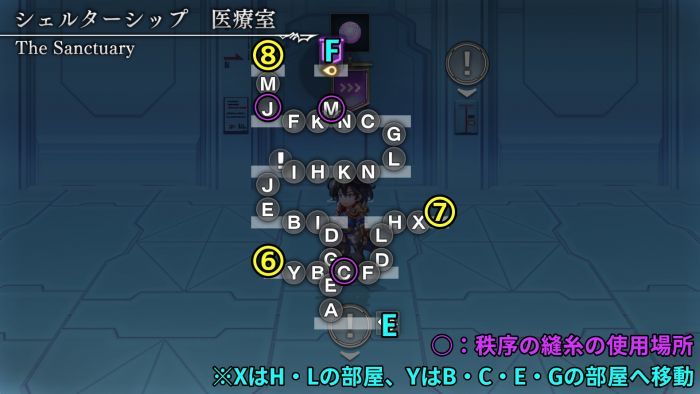 ※特殊:Y号门未使用缝线时,会传送到正下方BCEG标示的房间