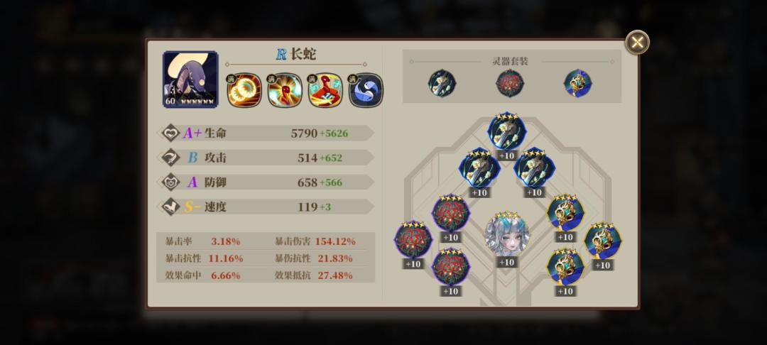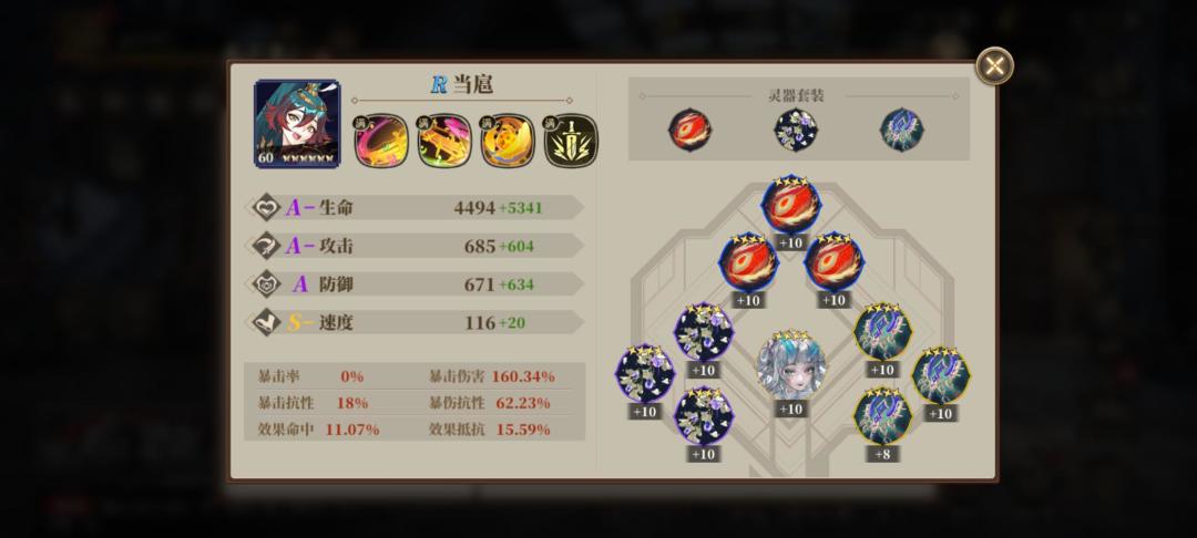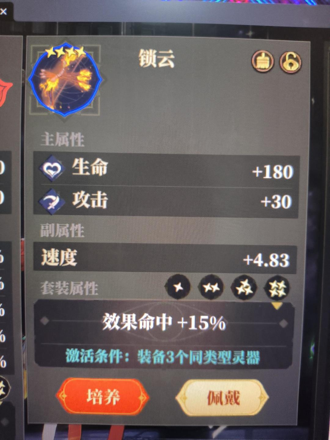 3.进攻辅助当扈,一个无人提及但是隐藏分很高的辅助,在我们前期抽卡过程中很容易满叠,20灵气技能琴音三叠对敌方3个目标施加初始命中80%的25%减攻debuff,有效应对目前pvp多C阵容,被动挨打随机对对方上debuff,一定程度对多动高速阵容有应对作用,前提是天镜灵装速度套,需要出手速度高于对方输出。