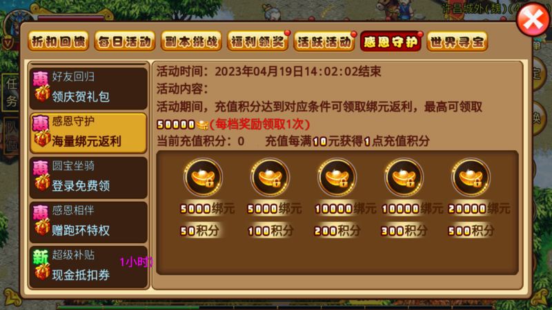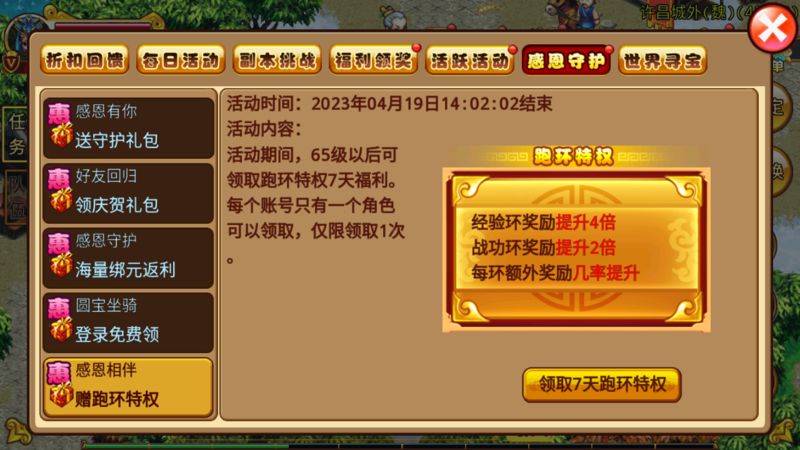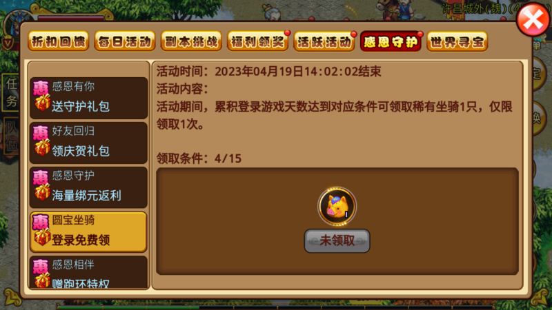 65级以上的活跃玩家可在【活动-感恩守护】界面参与以下活动: