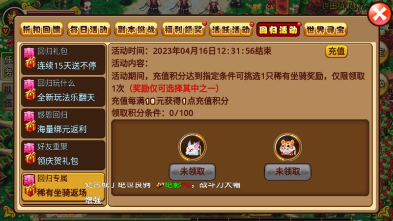 账户离线超过30天,70级以上角色再次登录游戏在【活跃-回归活动】界面即享老玩家回归权益