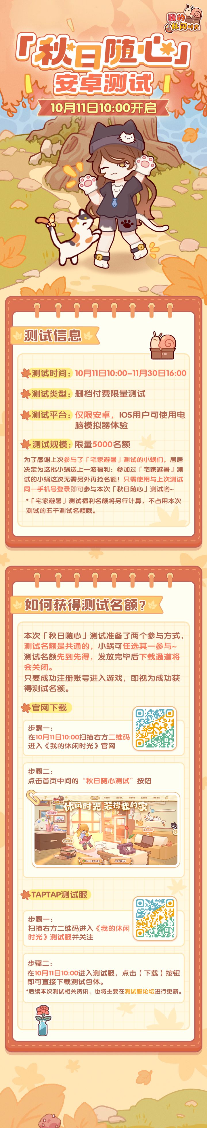 《我的休闲时光》即将迎来新一轮的「秋日随心」测试啦~