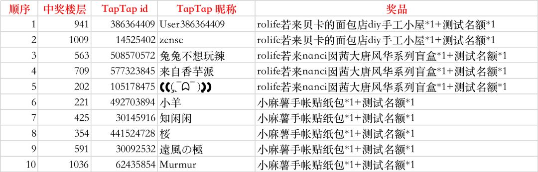 具体中奖名单将会在10月1日10:00公布,届时请中奖的玩家留意taptap站内信,并按照指示填写用于登录游戏的手机号码,居居将会统一登记中奖小蜗的手机号码,10月11日10:00游戏开放下载后使用填写的手机号码即可成功登录游戏,如有疑问,欢迎加入官方玩家交流群(q群:823323859)询问客服小姐姐噢~~