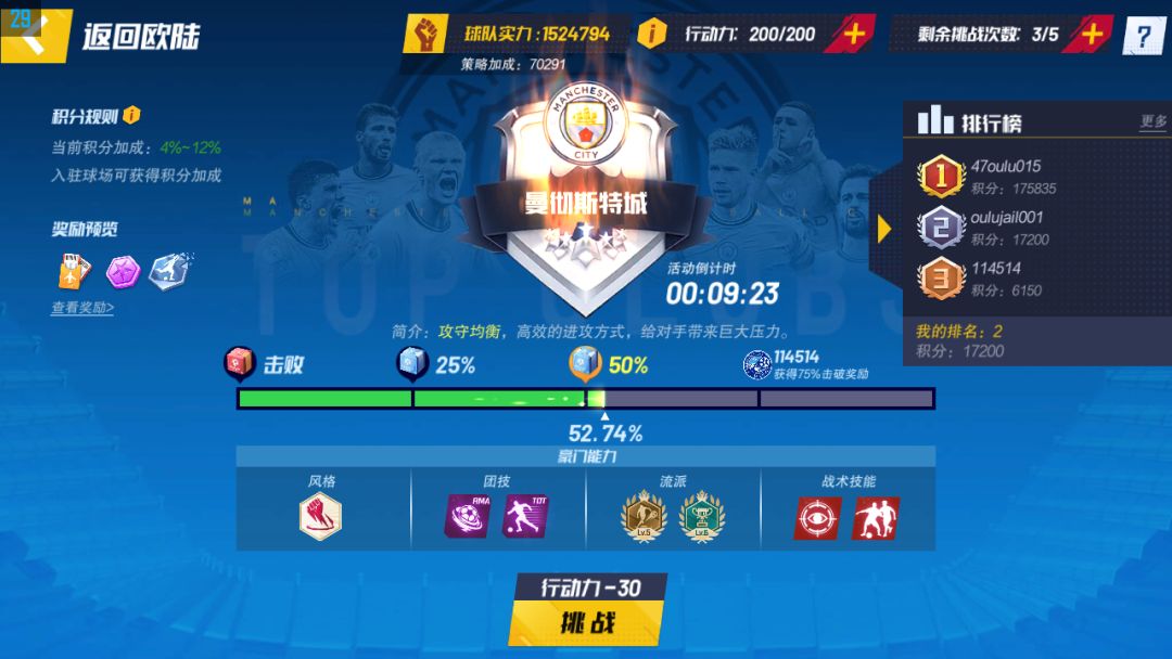 活动时间:10月2日0点-10月8日0点五星豪门俱乐部降临欧陆争霸赛,各位经理人每日12:30~13:00可进行挑战。积分排名前三玩家晚上可在欧陆争霸赛开启盛宴,邀请全服玩家领取奖励!