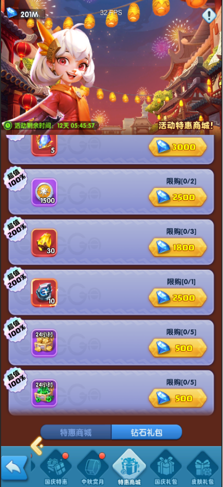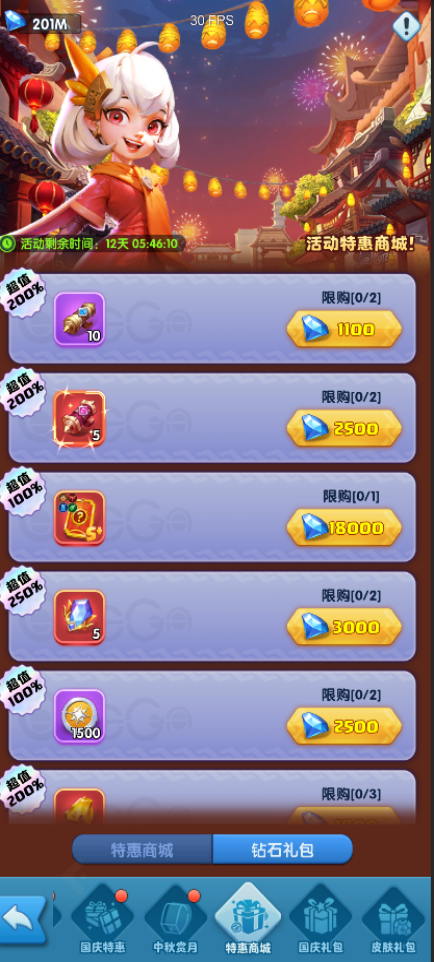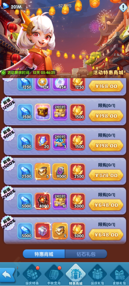 活动期间,开放国庆礼包的购买。