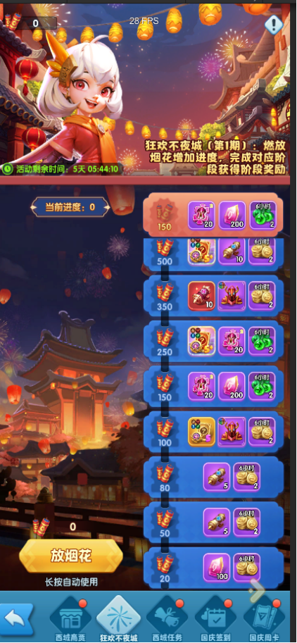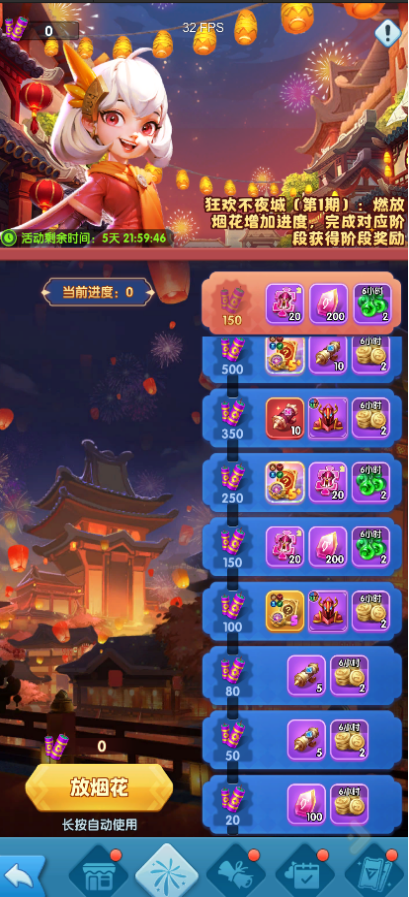 燃放烟花增加进度,完成对应阶段获得阶段奖励