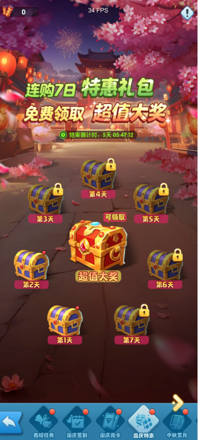 活动期间,国庆特惠礼包开放购买,连购七天免费领取超值大奖。