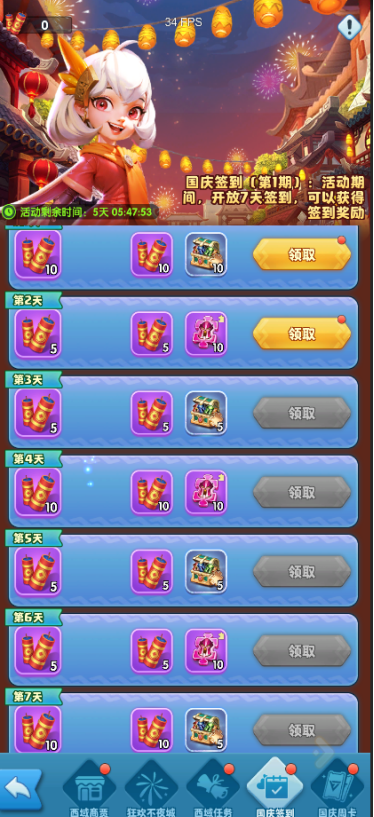 活动期间,开放7天签到,可以获得签到奖励