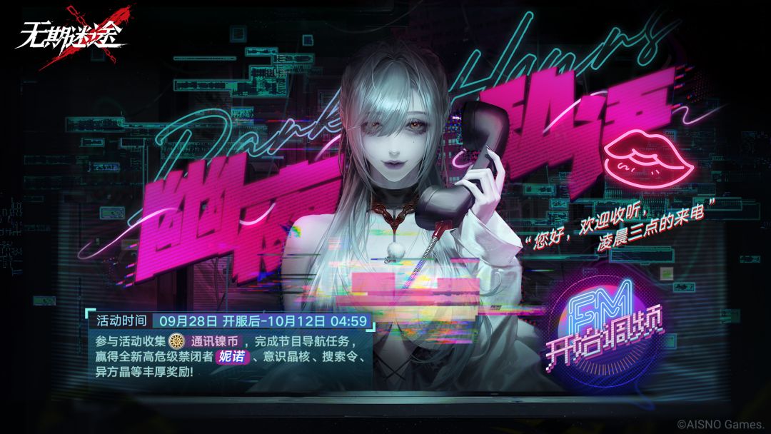 ■兑换说明:活动期间通过完成限时任务、通关活动关卡等途径,获得活动代币【通讯镍币】。使用代币可兑换限定唱片【午夜梦热线】、【意识晶核】、【搜索令】等丰厚养成资源奖励!