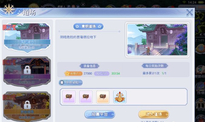 道场算是比较难的了,它每关都是一个MVP或者MINI怪物,没有小怪,并且伤害也很高,我们实在打不过的话就直接打一打失败就行。