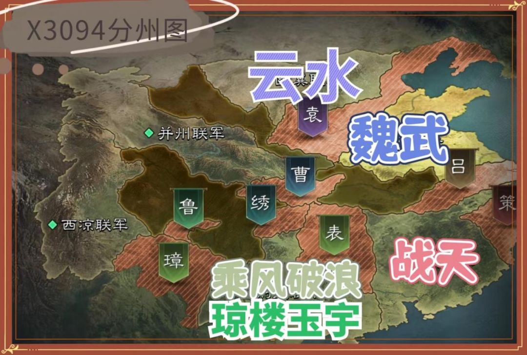 刘表和袁绍阵营的主盟,先后进入资源州,曹操阵营【一个青】的名号与另外两方看起来是同系列,不知是否有共识。