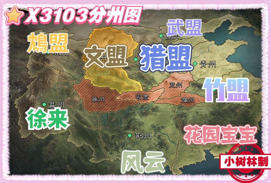 【竹盟】虽偏局徐州,但持续霸榜,此外除青冀由【猎盟】把持外,其余各州均有领头羊。