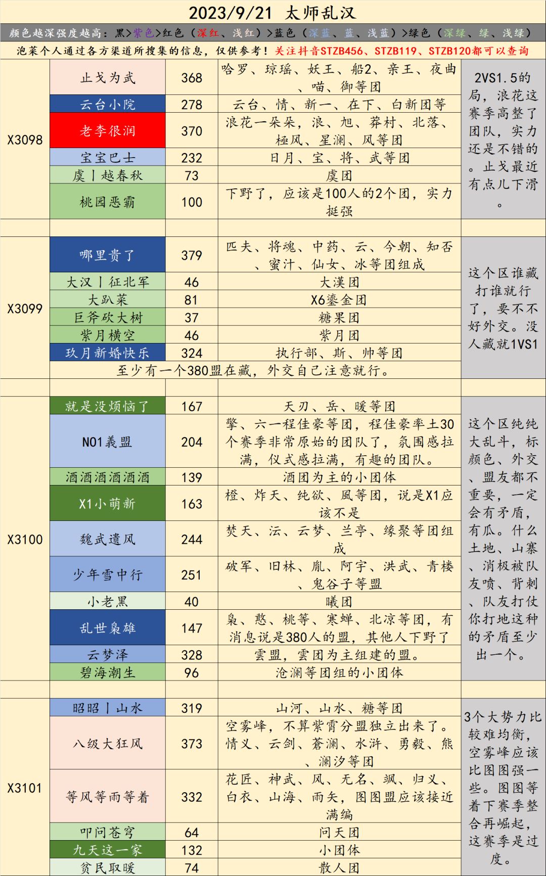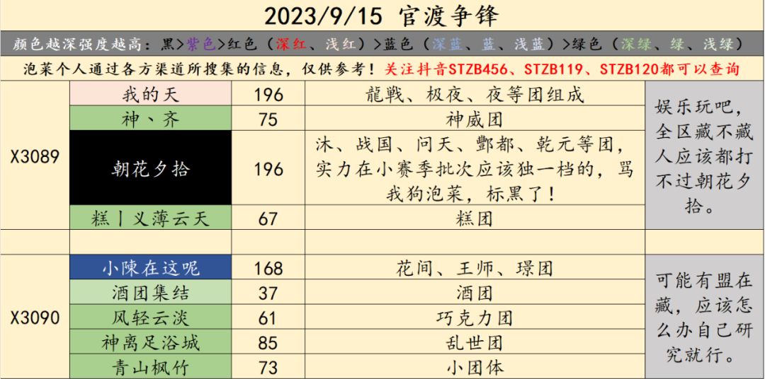 注:本文情报主要来源于部分相关知情人士,信息涉及面广,同盟和人数繁多,难免会有疏漏,欢迎各位主公指正和补充,同时感谢各路辛勤的记录者、史官们!