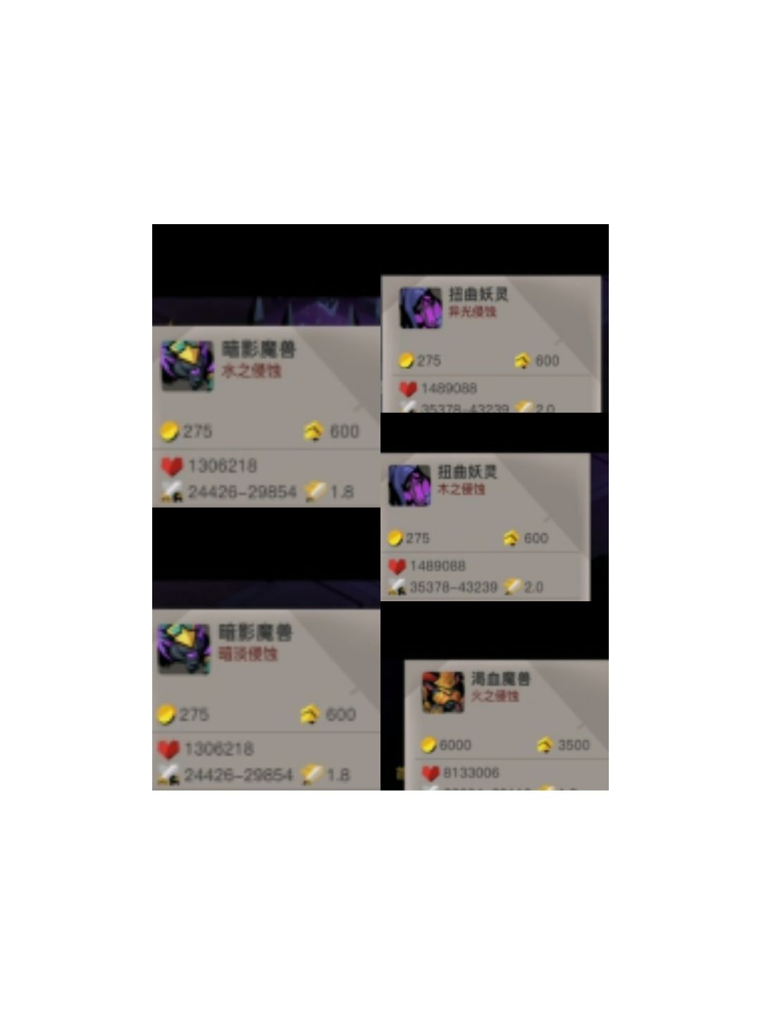 异光侵蚀等(扭四后带光,暗,火,水,木字的四字词条):怪物的普通攻击额外附带一记对应的元素伤害