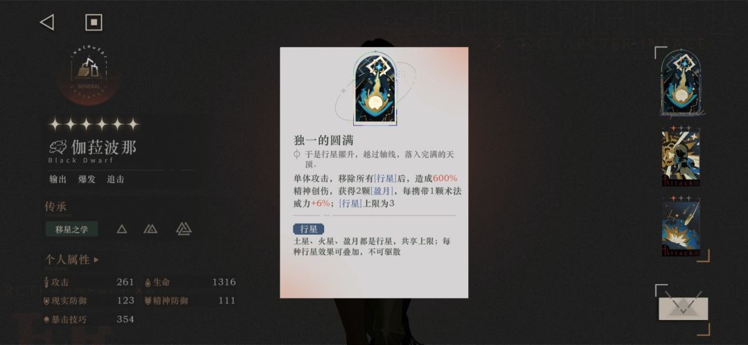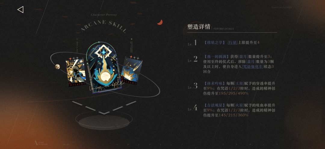 三:释放大招,根据当前消耗的《行星》获得额外效果:1.追击1/2/3阶单体技能(吃技能特效)