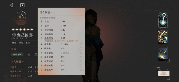 角色补充:小技能低倍率但是有穿透,一个乘区,几乎跟200单体不差,二技能吸血几乎用不着,酌情放群体,没有额外激情获取手段,对皮克勒斯和牙仙(不占行动卡)的需求较大,使用其他角色体验感会有所下降。