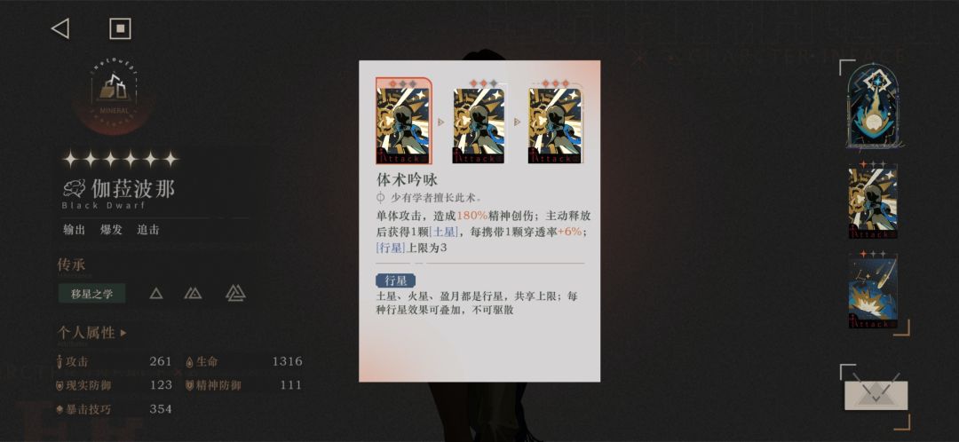 备注:获得的《行星》《行星占卜》没有回合限制,但是有次数限制,移出《行星》等同于消耗层数。