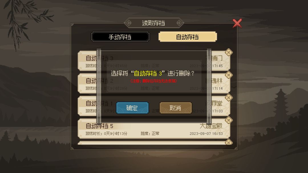 - 新增手动删除存档功能,包括手动和自动存档均可删除,手动删除的存档无法恢复