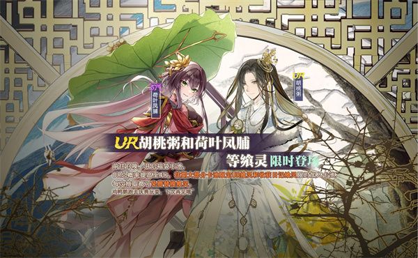 活动描述:活动期间,开启福袋卡池,卡池内新增UR飨灵-胡桃粥和SR飨灵-荷叶凤脯,同时往期大部分卡池限定UR飨灵也可在此卡池中抽取。御侍大人每一次十连都有2次机会可以免费替换已经抽到的飨灵。PS:鸡鸭鹅跑去庆典玩耍,下次再见哦~