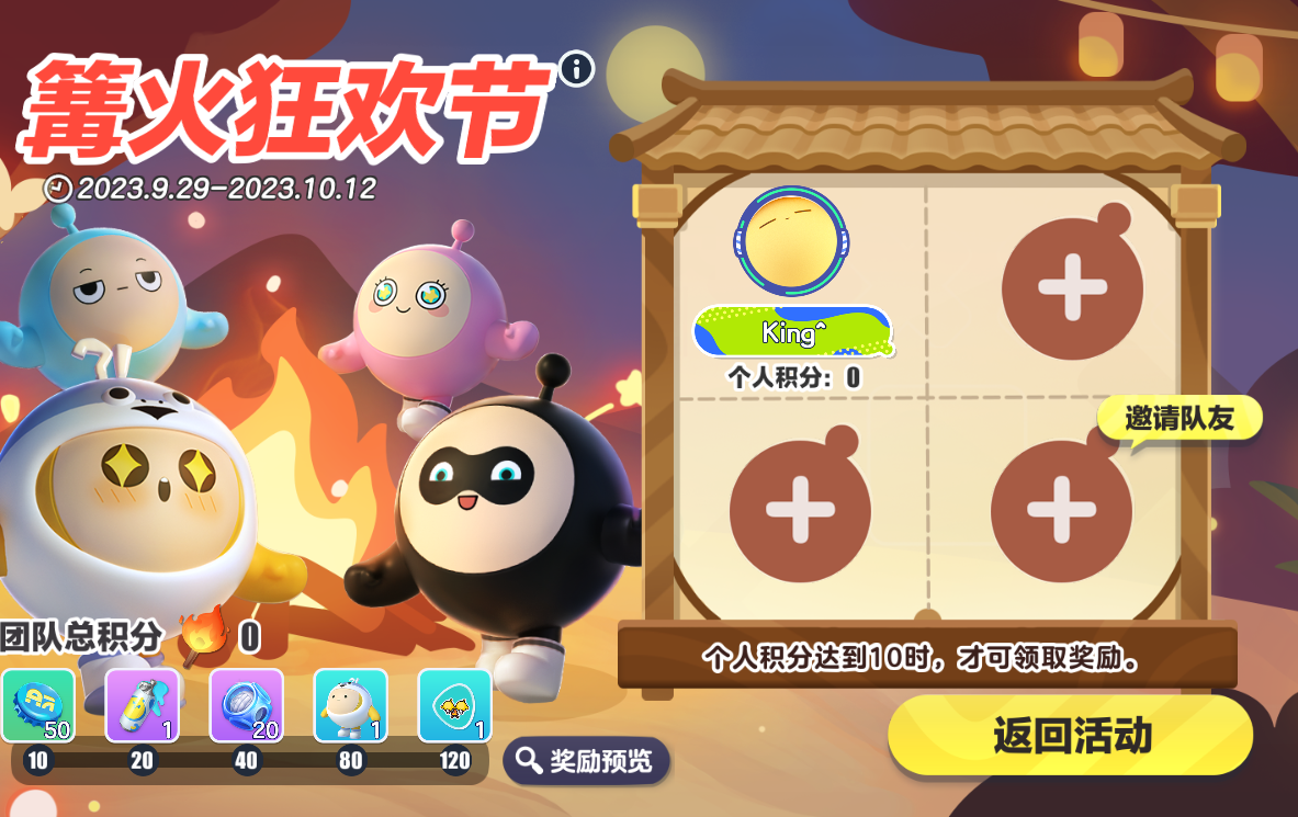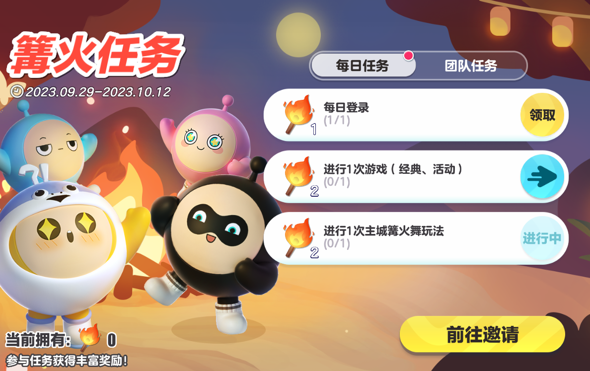 完成每日任务或团队任务获得篝火积分