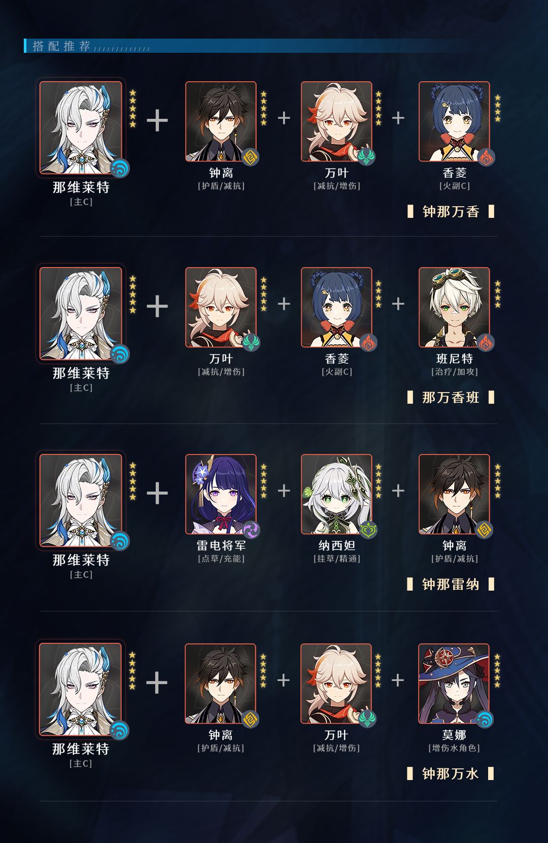 那维莱特(主C)+钟离+万叶+水角色